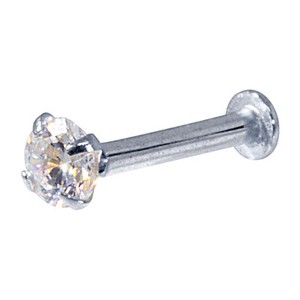 Image Name: ... Gauge - 14kt White Gold Prong Set Labret - 3mm Diamond (SI1 Color G